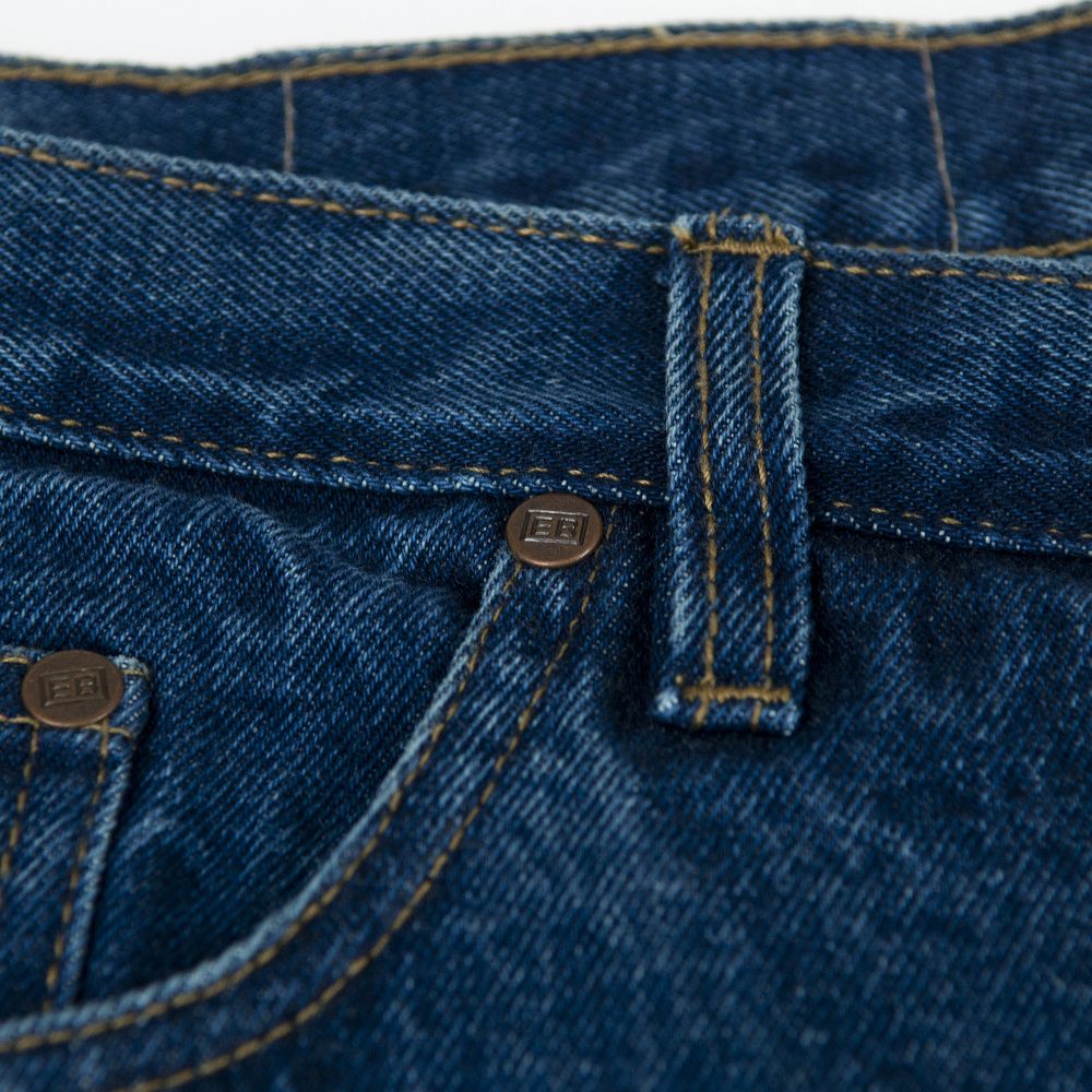 Fabric: 14.75oz Indigo blue denim Colour / Finish: Stonewash